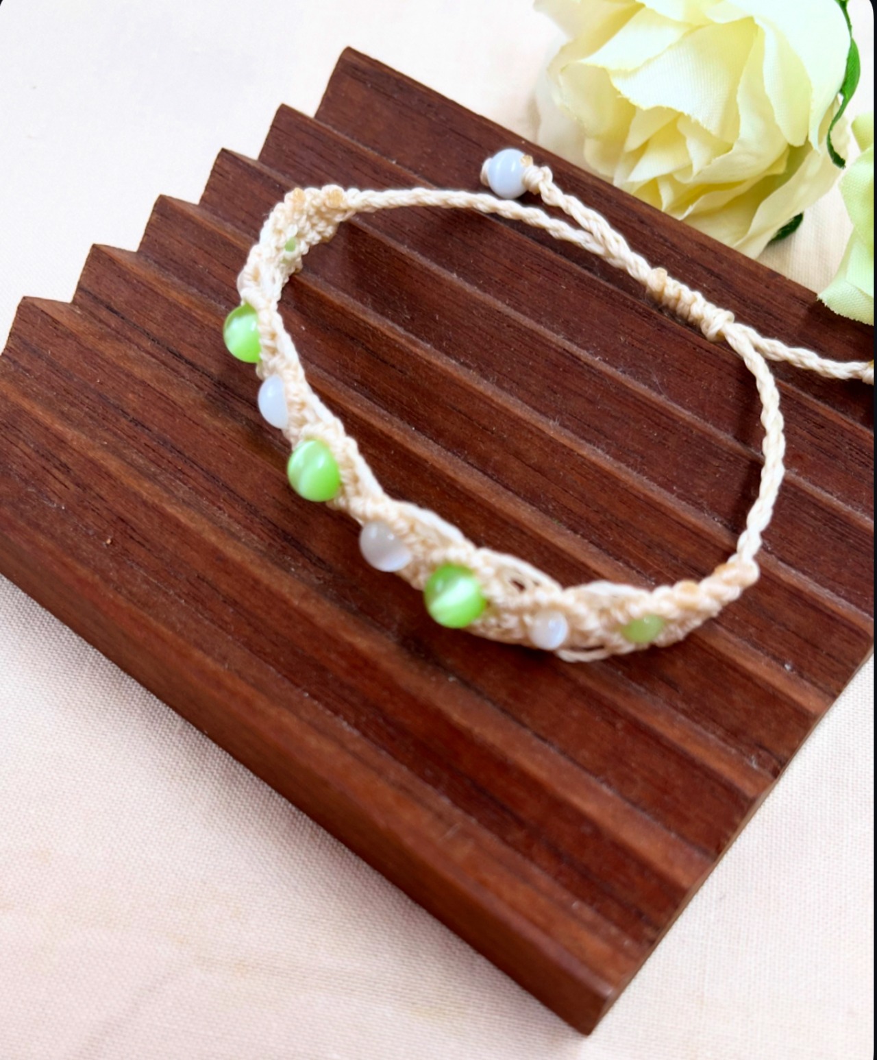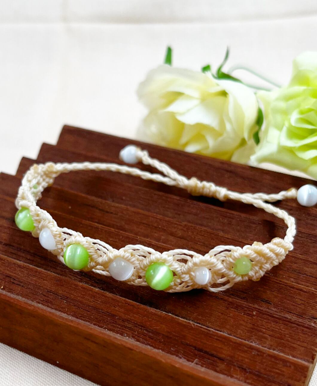 **キャッツアイのブレスレット(グリーン×ホワイト)**